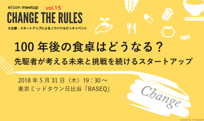『価値ある出会いが未来を創る』をコンセプトに掲げるオープンイノベーションプラットフォームeiicon(エイコン)が主催する大手企業とスタートアップのミートアップイベントCHANGE THE RULES eiicon meet up!!。今回は「食」をテーマに、新たなイノベーションを試みる大企業の取り組みから、新進気鋭のベンチャーピッチまで盛り沢山なイベントレポートをお届けします!