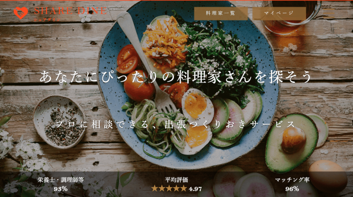 子育て世帯向けのプロの料理家による出張つくりおきサービス「SHARE DINE」。子育て中や共働き世帯向けに、登録をする調理師や栄養士などのプロの料理家が、個々の家庭の悩みやニーズに合わせた献立を提案、食材の買いつけから調理までをワンストップで提供してくれる。同社からは、代表取締役の飯田氏が当日のピッチに臨みました。