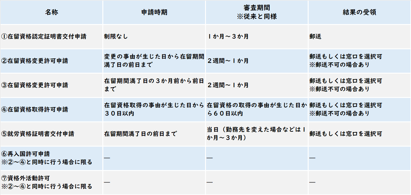- オンライン上、もしくは郵送で完結するため、混雑する入管に出向く必要が無い