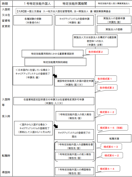 特定技能外国人の受入れにあたっては事前に事業者の登録を、実際の勤務開始前に外国人の登録が必要です。