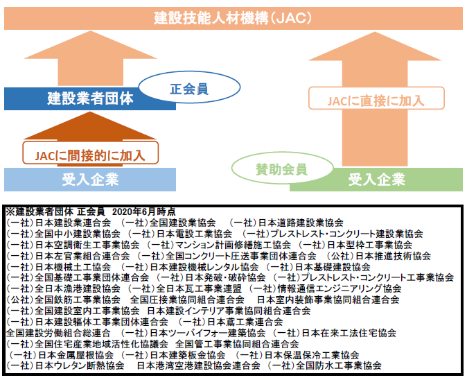 特定技能の外国人を受け入れる場合、「(一社)建設技能人材機構(JAC:Japan Association for Construction Human Resources)」に加入しなければなりません。