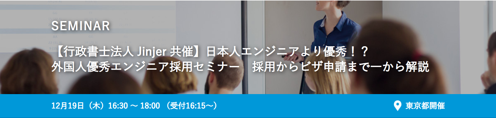 3,000名以上の外国人材内定実績を誇る株式会社ネオキャリアさんと、高度人材から特定技能まで幅広い申請実績を持つ行政書士法人jinjer が共同開催します。