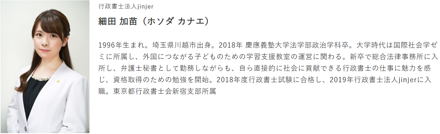 細田 加苗|行政書士法人jinjer第3部(18:00~)