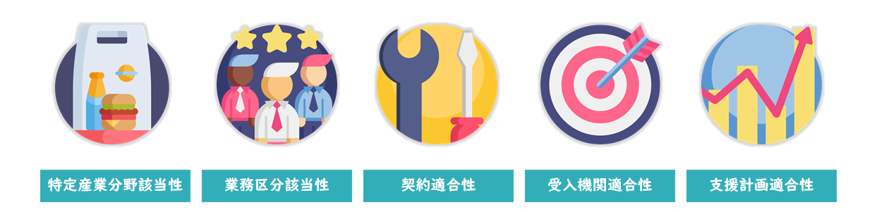 外国人が活動する内容が特定技能に適合しているかどうかを審査する「在留資格該当性」には、5つの審査要素があります。
