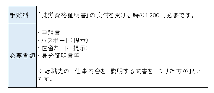 転職先の 仕事内容が 今持っている就労ビザのままで 行えるかどうかを 入管が判断して 証明してくれるものです。